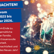 Ab Mittwoch, 3. Januar 2024 sind wir wieder für Sie da.